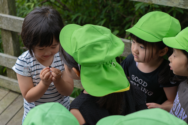 その「人と関わる心地よさや安心感」は、自らの学びを生み出すエネルギーとなり、様々な事柄に興味関心を抱き、感じ、考え、工夫し、表現する姿となります。乳幼児期の子どもたちにとって学びは、園生活での保育者との信頼関係、主体的な遊び、探究活動、仲間との時間、多様な経験のなかから生まれます。私たちは、その「学びの芽」を大切にし、それらの「学びの芽」が互いに繋がり、広がったり深まったりするように支えます。