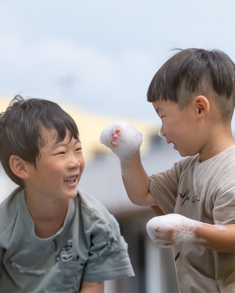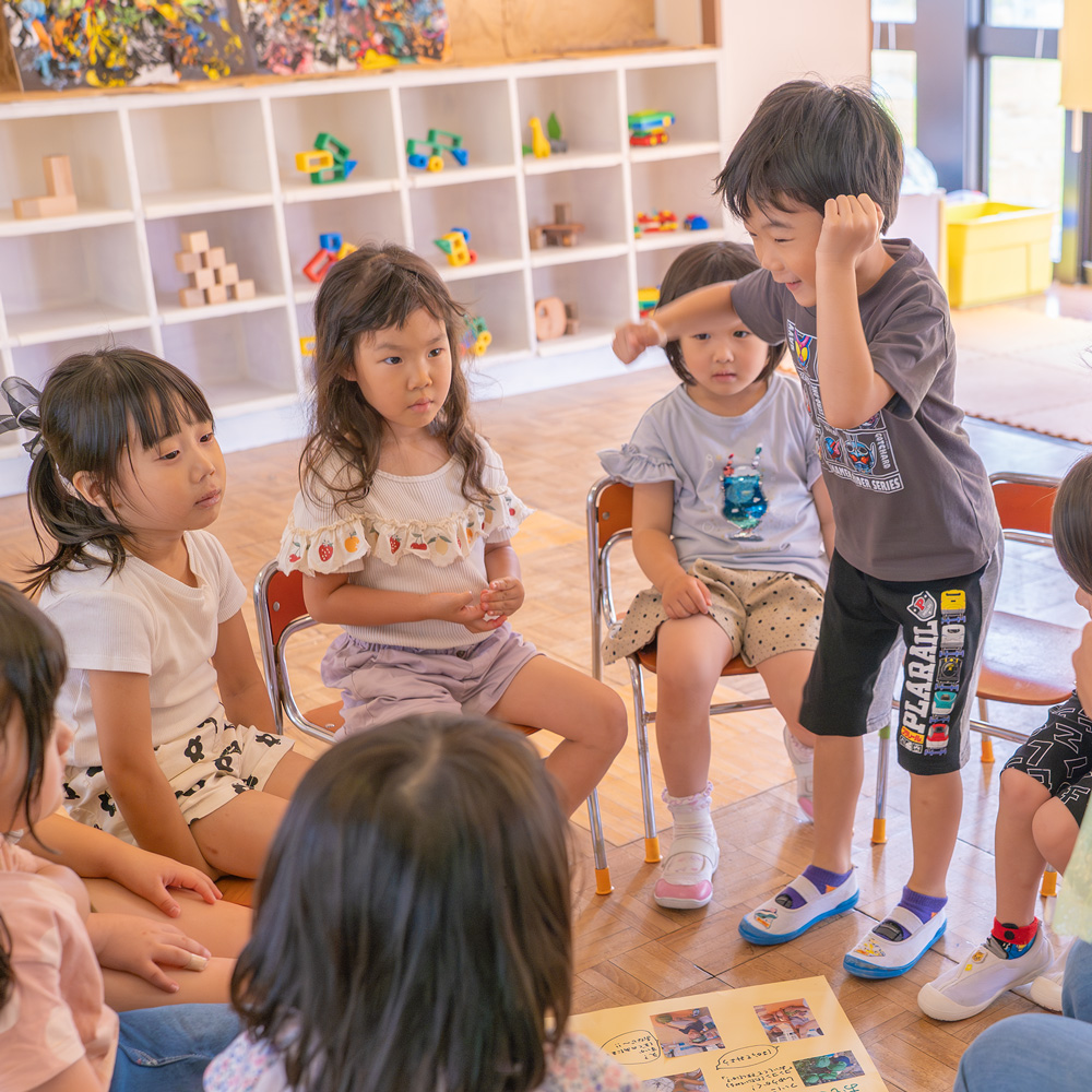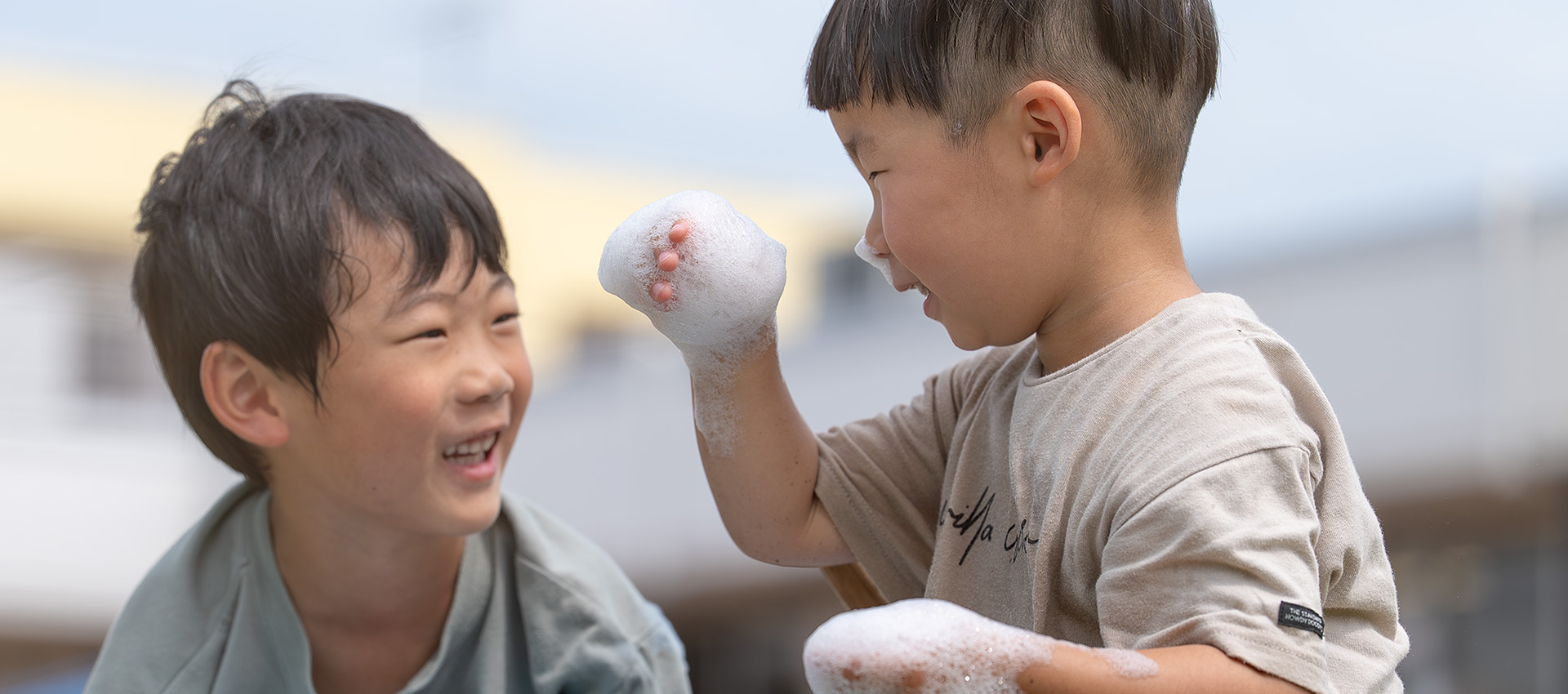 本園では、こどもたちが ひと・もの・ことと出会い、共に過ごす友達や保育者と喜びや驚きを分かち合いながら、気づきを語り合い、追求することの面白さを存分に味わうことを大切にしています。