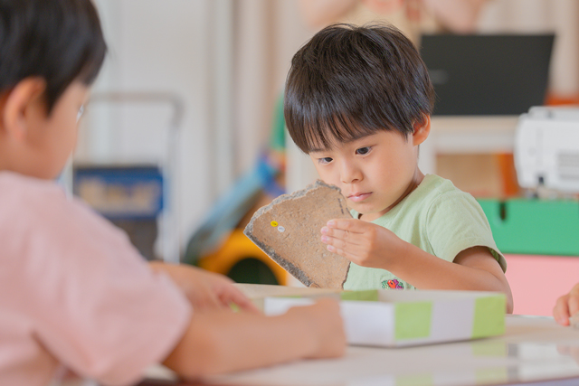 その「人と関わる心地よさや安心感」は、自らの学びを生み出すエネルギーとなり、様々な事柄に興味関心を抱き、感じ、考え、工夫し、表現する姿となります。乳幼児期の子どもたちにとって学びは、園生活での保育者との信頼関係、主体的な遊び、探究活動、仲間との時間、多様な経験のなかから生まれます。私たちは、その「学びの芽」を大切にし、それらの「学びの芽」が互いに繋がり、広がったり深まったりするように支えます。